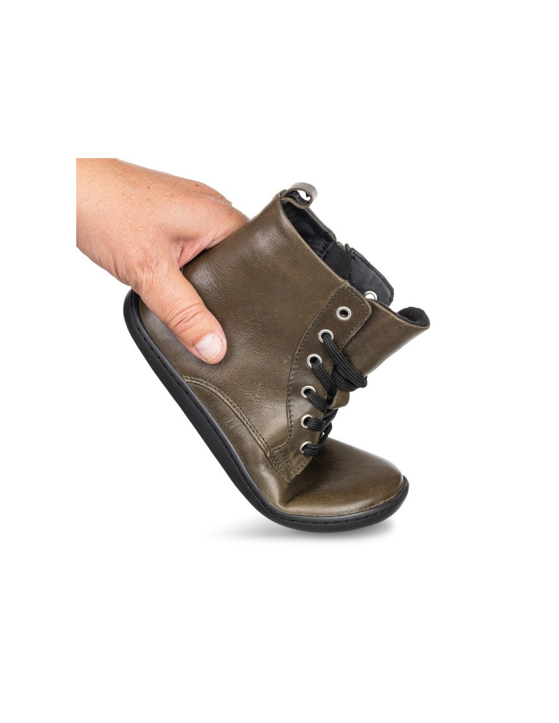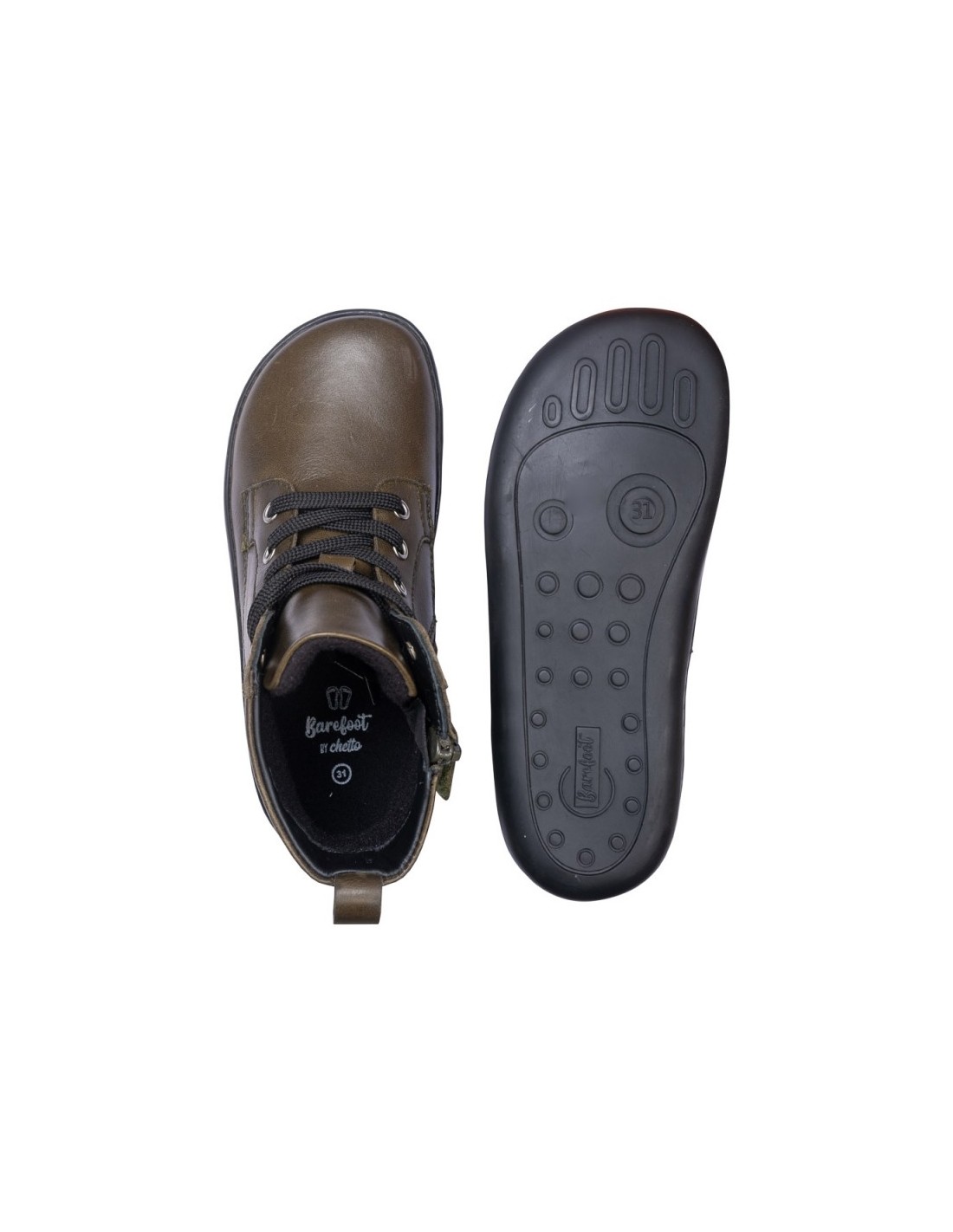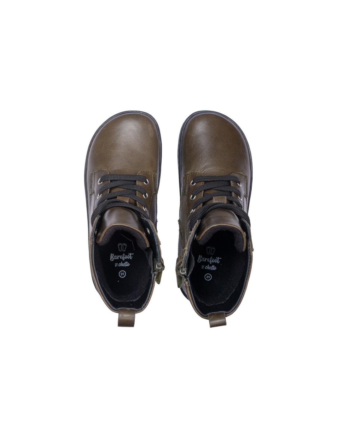Botín respetuoso Chetto 1125540 en piel napa con cordones y cremallera. Suela plana sin drop, plantilla extraíble y forro cálido. Tallas 33–39.